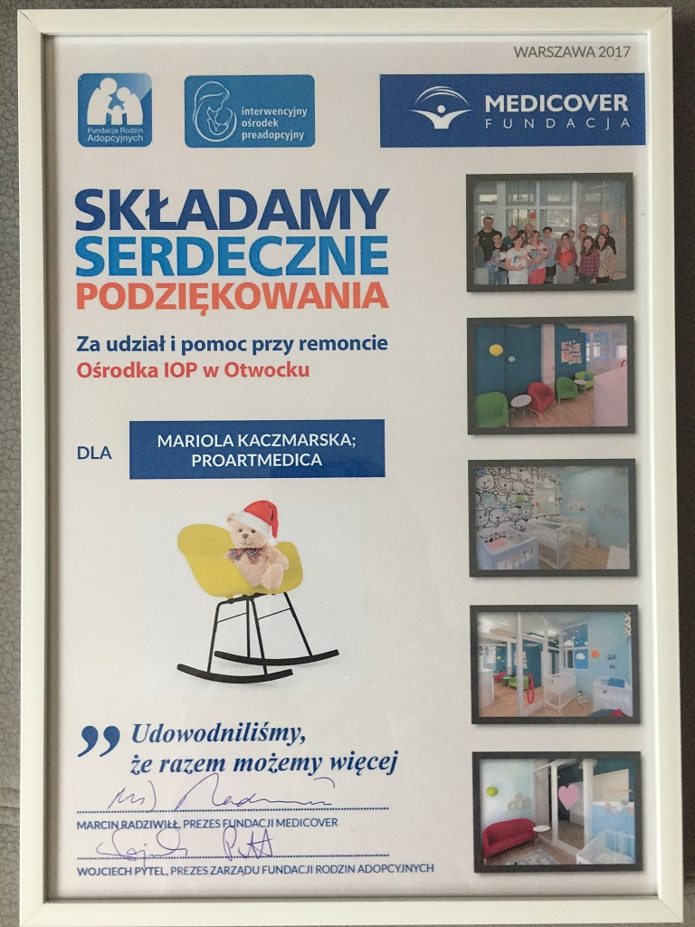 Za udział i pomoc przy remoncie Ośrodka IOP w Otwocku.
